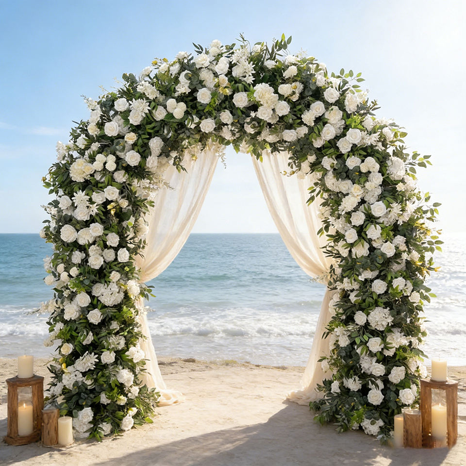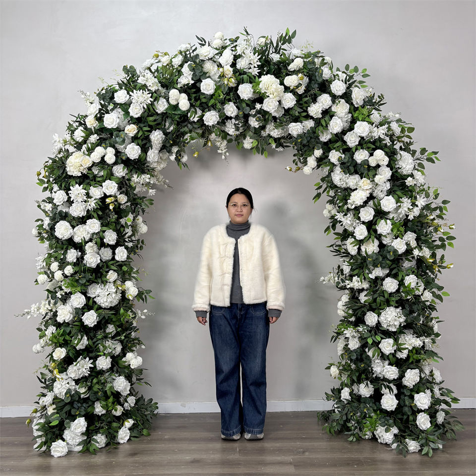 ฉากหลังเวทีงานแต่งงาน ดอกกุหลาบขาวผ้าไหมประดิษฐ์ ทำมือ ดอกไม้จำลองคุณภาพสูง ตกแต่งซุ้มโค้ง สำหรับวันขอบคุณพระเจ้า วันรับปริญญา