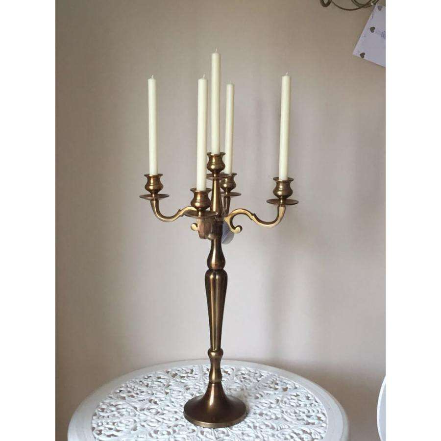 เชิงเทียนทองเหลืองหรูหราสำหรับงานแต่งงานเชิงเทียน5แขนสำหรับตกแต่งวิหารและโบสถ์