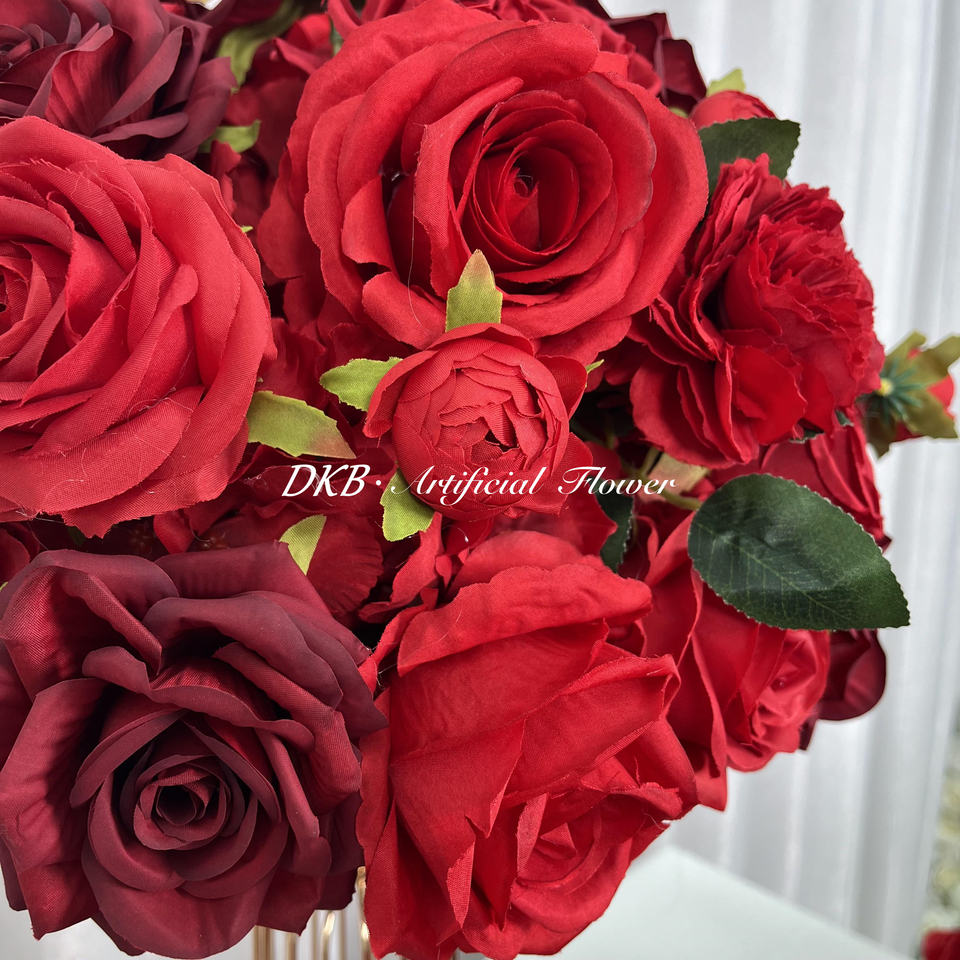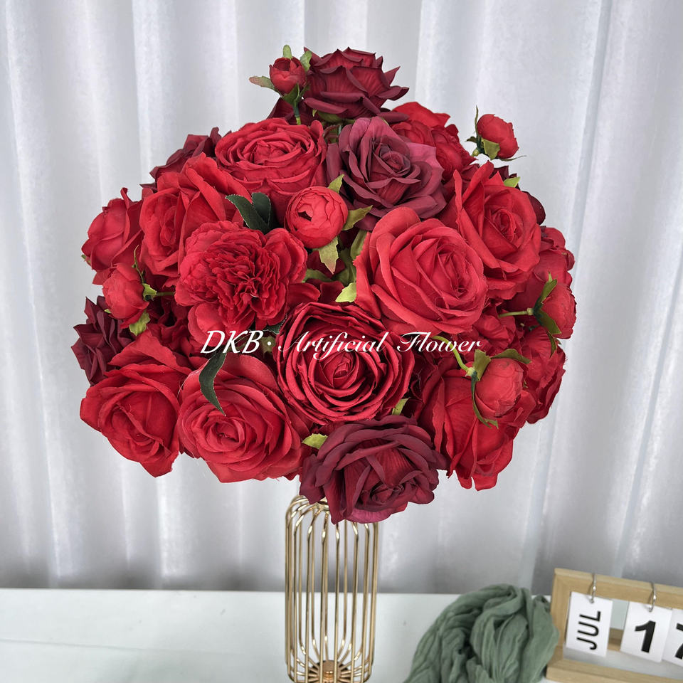 ลูกบอลดอกกุหลาบทำจากผ้าไหมสำหรับปีใหม่และของตกแต่งโต๊ะจัดงานแต่งงาน