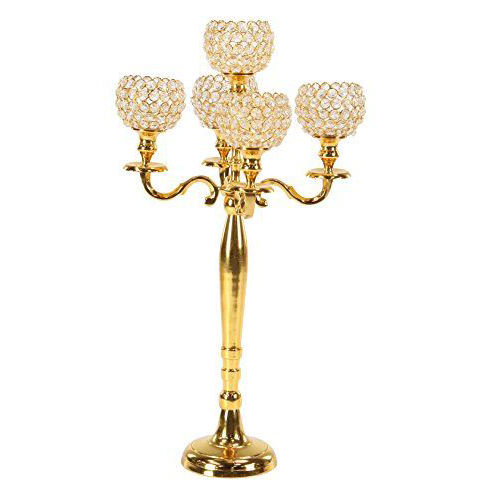 เชิงเทียนคริสตัลทรงลูกบอลคริสตัลรูปเชิงเทียนแบบ5แขนทำจากอลูมิเนียมชุบทอง
