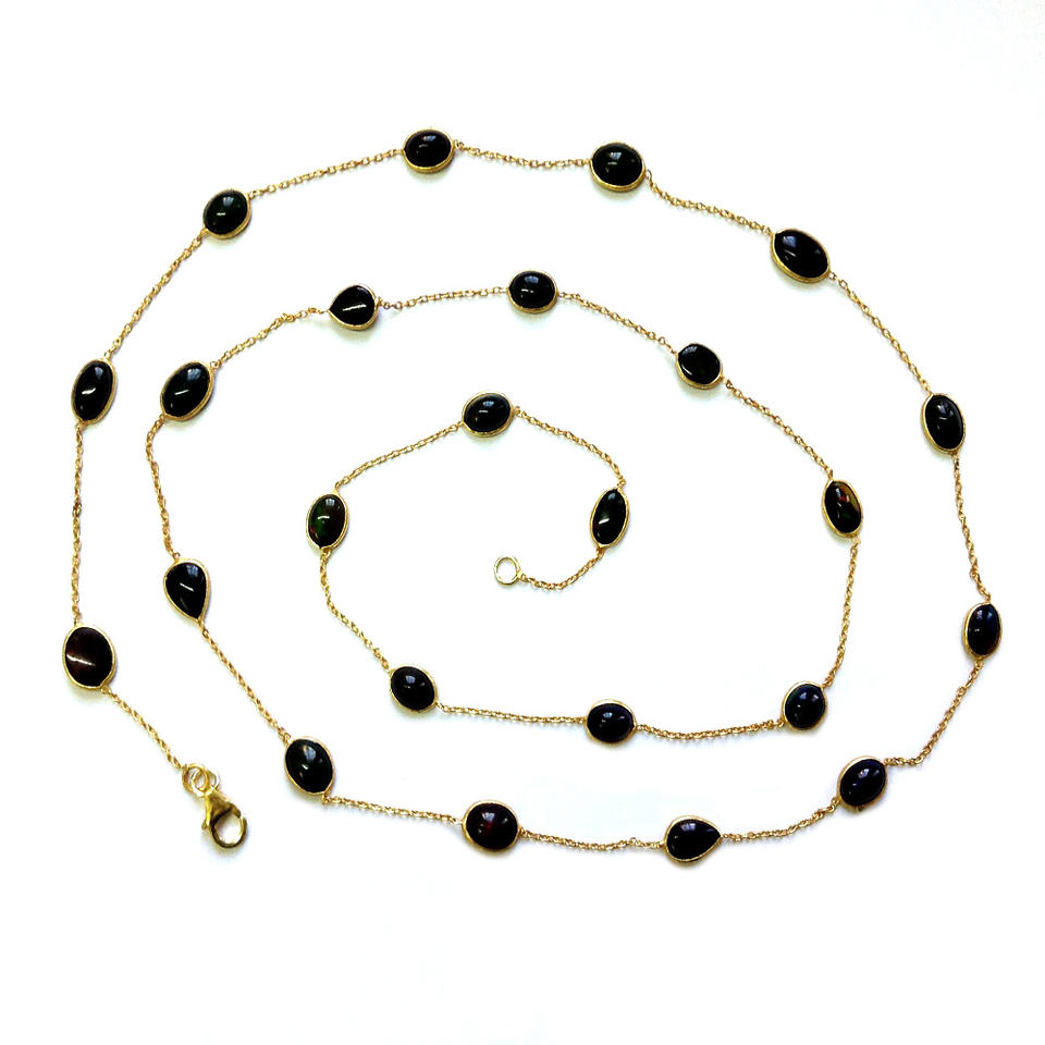 ชุดแต่งงาน 925 เงินสเตอร์ลิงราคาไม่แพงต่ําขั้นต่ําผู้ผลิตเครื่องประดับสีดําโอปอลอัญมณีสร้อยคอโซ่ยาว