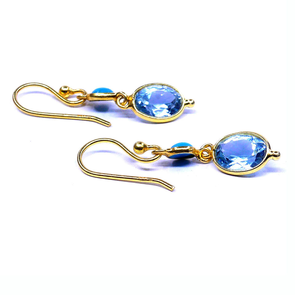 ต่างหูอัญมณีบุษราคัมสีฟ้าชุบทองสีเงินสเตอร์ลิง925สำหรับงานแต่งงานราคาไม่แพงสำหรับผู้หญิง