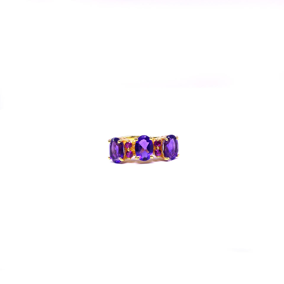 ชุดแต่งงาน925เงินสเตอร์ลิงประดับทองอเมทิสต์พลอยบุษราคัมสีแดงแหวนคลาสสิกสำหรับผู้หญิง