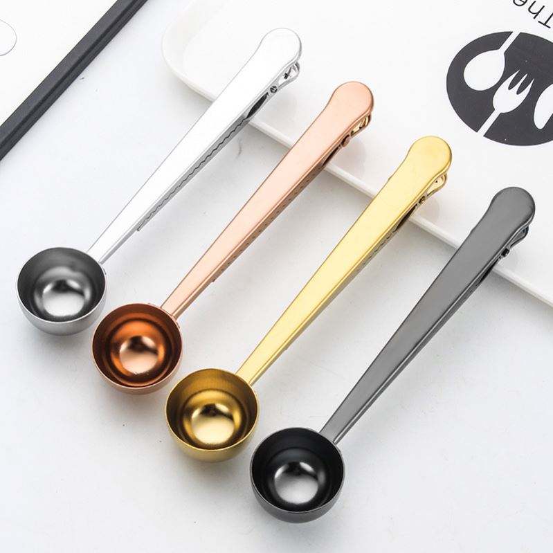 ช้อนตวงสแตนเลสสำหรับงานแต่งงานช้อนตักเมล็ดกาแฟพร้อมคลิปหนีบถุง