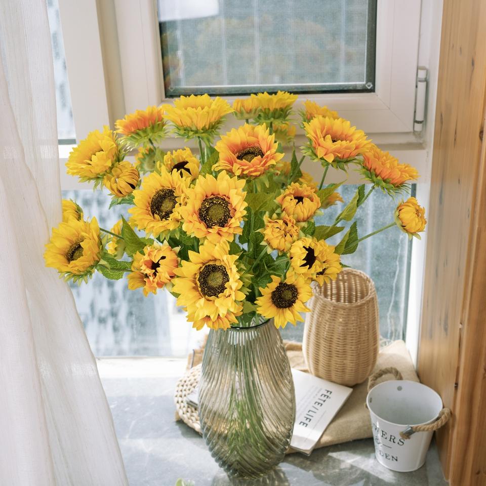 ดอกทานตะวันจำลองสำหรับงานแต่งงาน ต้นไม้ประดิษฐ์ บอนไซตกแต่ง ดอกไม้ประดิษฐ์ติดผนัง