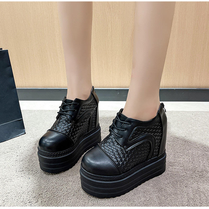 รองเท้าส้นแบนหัวกลมผูกด้านหลังรองเท้าพื้นหนาลำลองของผู้หญิงพื้นรองเท้าหนาไซส์ใหญ่พิเศษรองเท้าส้นเตี้ยหุ้มข้อ