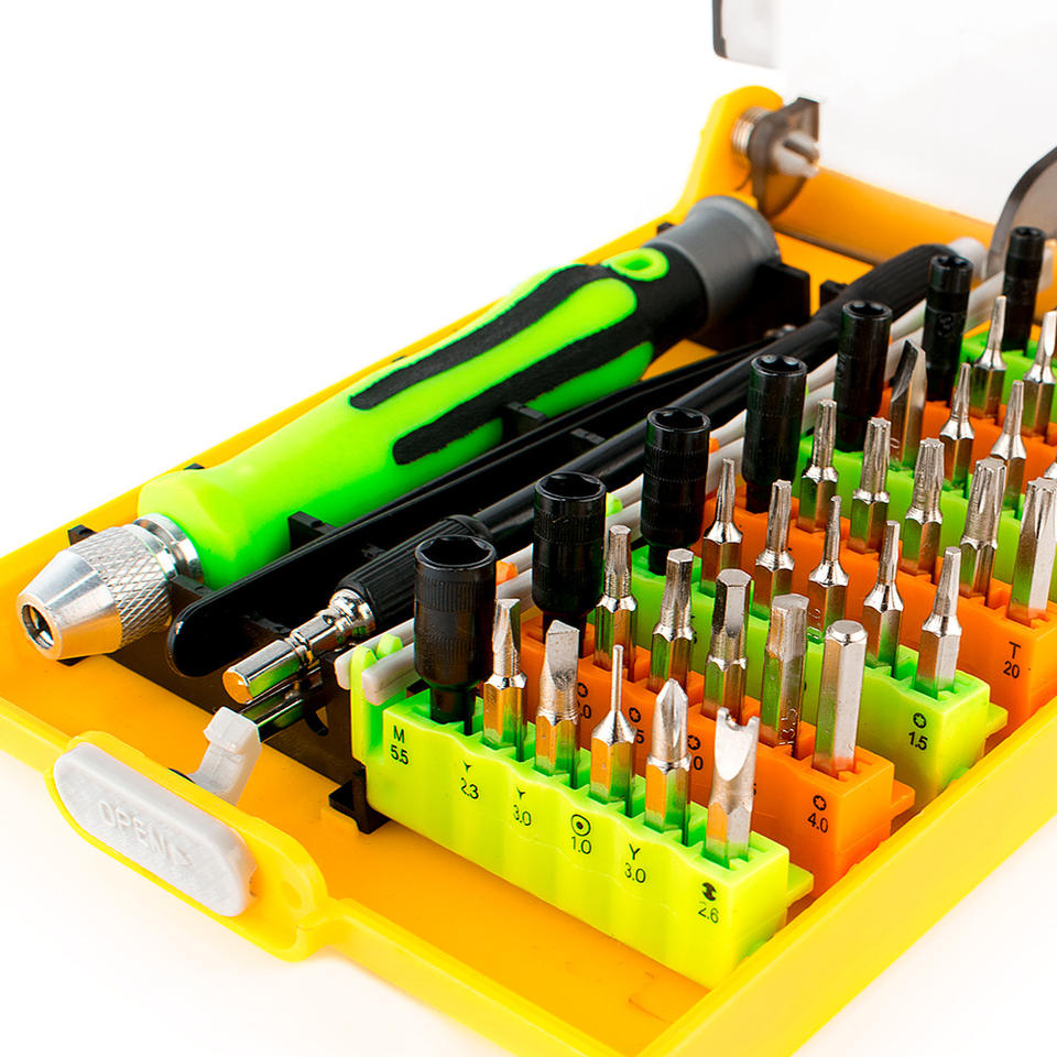 ชุดไขควง 46 ชิ้นพร้อมหัวเปลี่ยนได้สำหรับซ่อมนาฬิกาและโทรคมนาคม ทำจากเหล็กโครเมียมวาเนเดียมแบบแม่เหล็ก