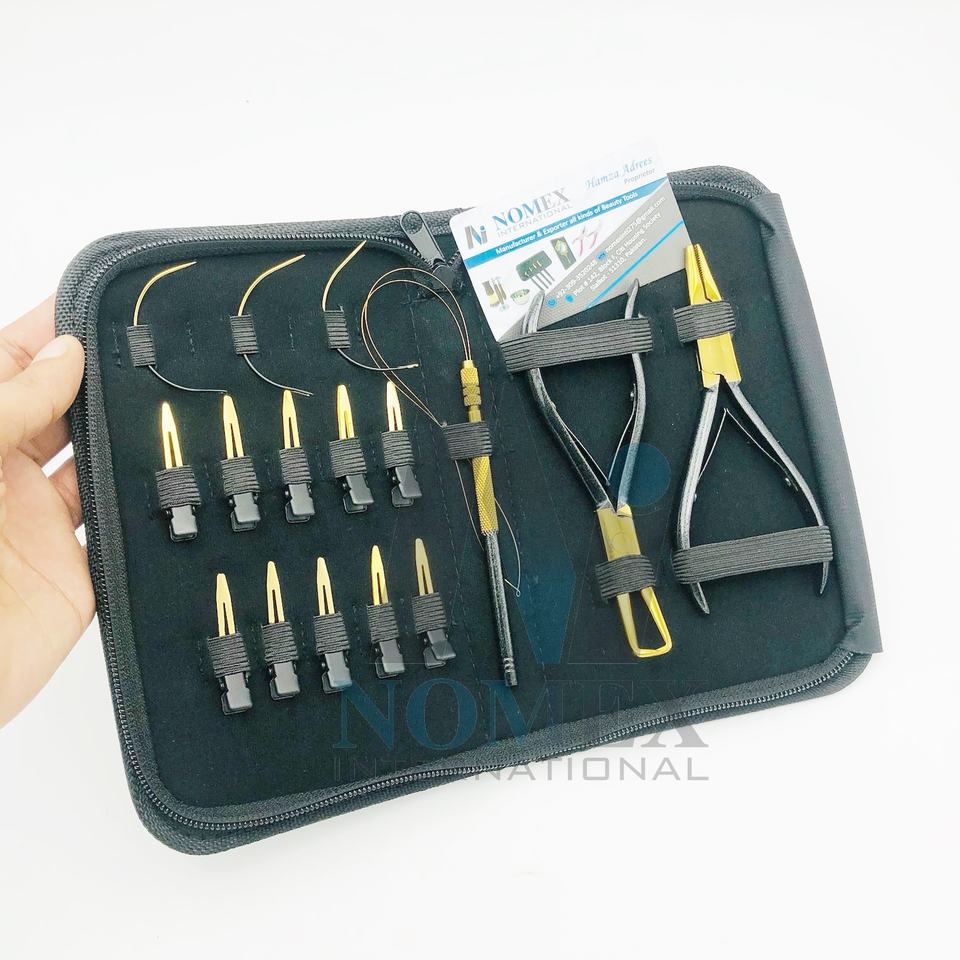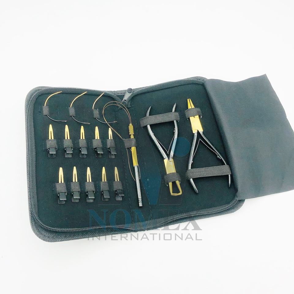 ชุดเครื่องมือสำหรับต่อผมสีดำและสีทองชุดเครื่องมือสำหรับต่อและกำจัดขนคลิปโลหะเข็มชนิด C