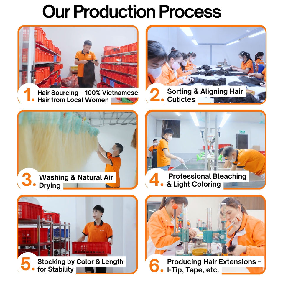 ผมต่อแบบมนุษย์ดิบๆชาวเวียดนามสีส้มตรงเครื่องทำผมแบบสองชั้น