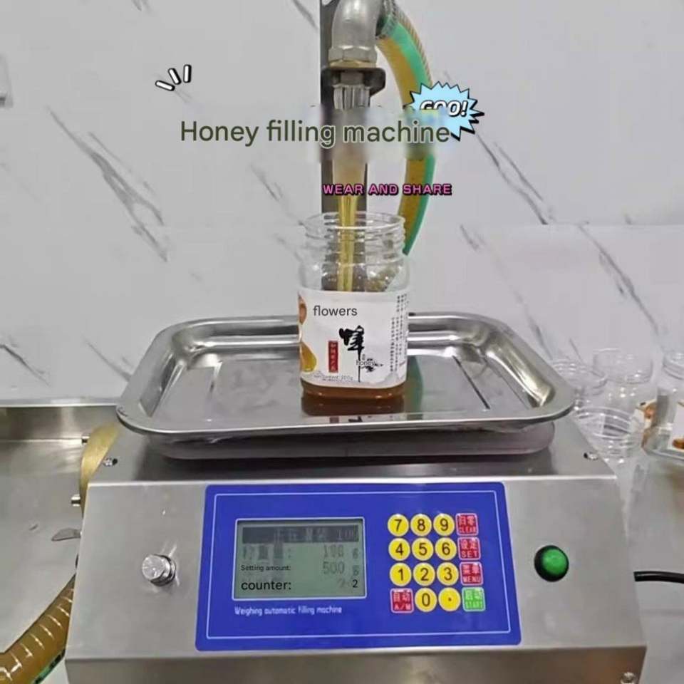 เครื่องบรรจุน้ำผึ้งซิลิโคนแบบน้ำหนักสำหรับบรรจุงาบดเหลว เครื่องบรรจุของเหลวข้นหนืด