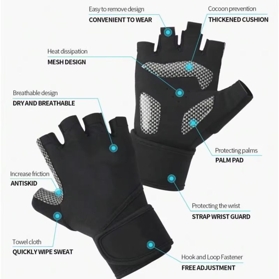 ระบายอากาศ, น้ำหนักเบา, สบาย, มีเบาะ, ครึ่งนิ้ว, Wrist support, ป้องกันข้อนิ้ว