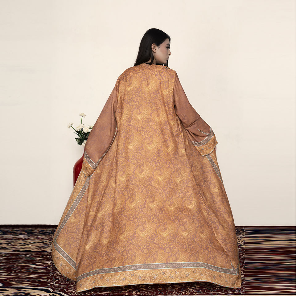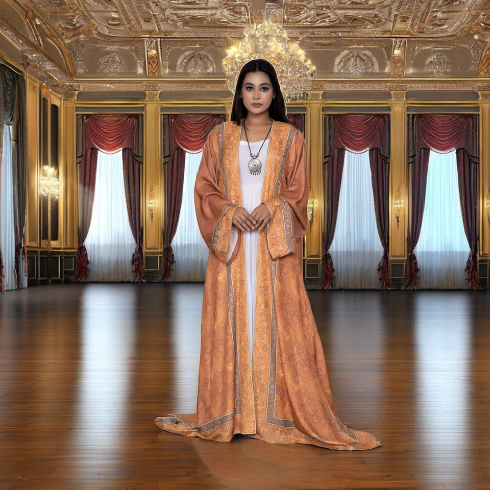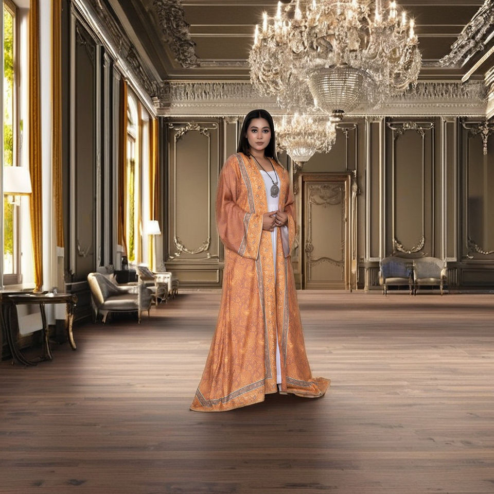 อาบายะห์แบบยาวคลุมพื้น ผ้าเนื้อนุ่มพลิ้วสวย แขนกว้าง เปิดด้านหน้า ดีไซน์เรียบหรู ทรงสวยสง่า เหมาะสำหรับโอกาสพิเศษ