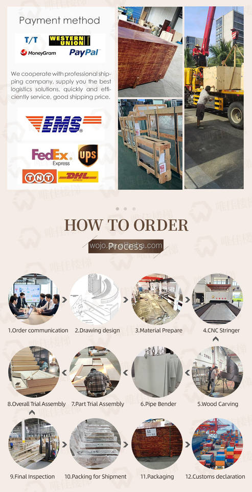 Weijia บันไดแบบโมเดิร์นแบบเกลียวออกแบบให้เป็นกระจกทำจากไม้สำเร็จรูปสำหรับภาพวาดคอนกรีตราวบันไดเหล็กและกระจก