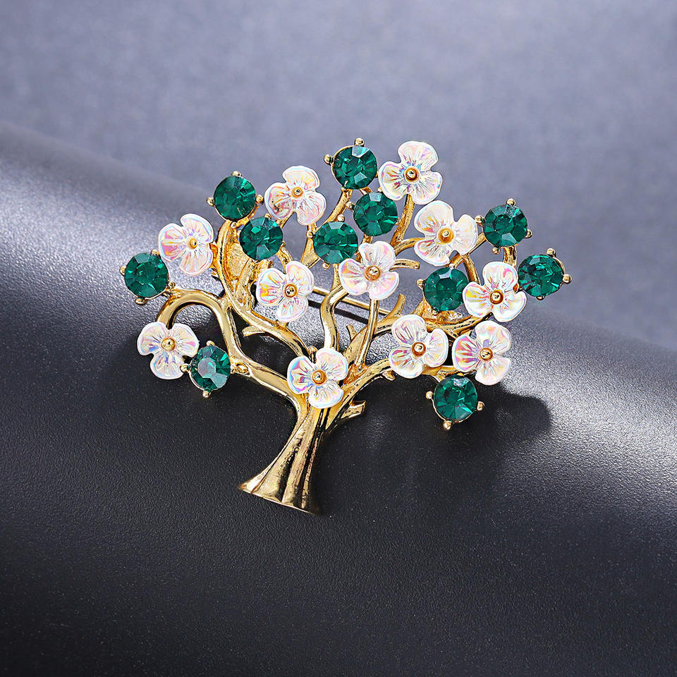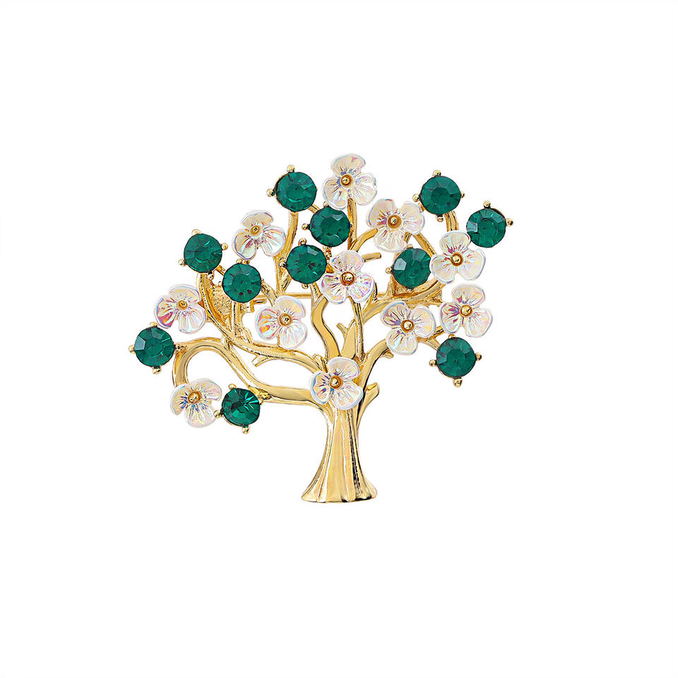 เข็มกลัดรูปต้นไม้ดอกไม้สีเขียว Weiman Plant หรูหราสำหรับผู้หญิง แฟชั่นประดับคริสตัลและเพชรเทียม ชุบทอง ผลิตจากโลหะผสม ออกแบบโดยดีไซเนอร์ สามารถสั่งทำได้