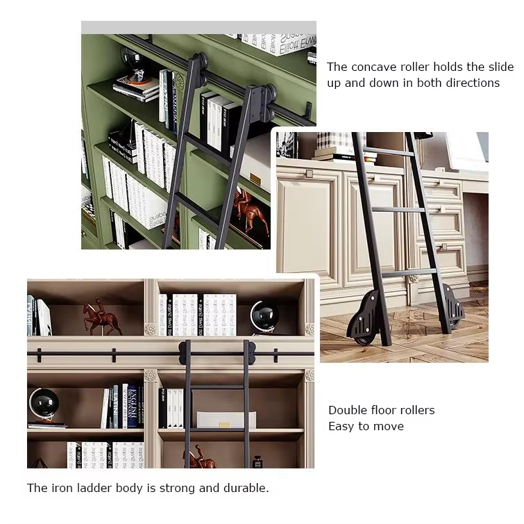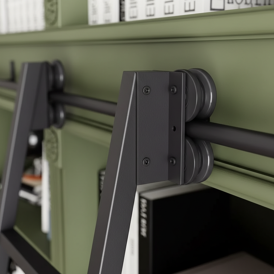 Wekis Heavy Duty Carbon Steel Industrial Loft Bookcase Quiet Roller Kit Durable Sliding Ladder Hardware Kit