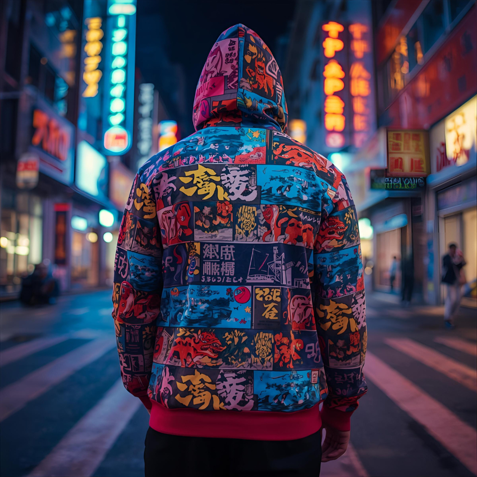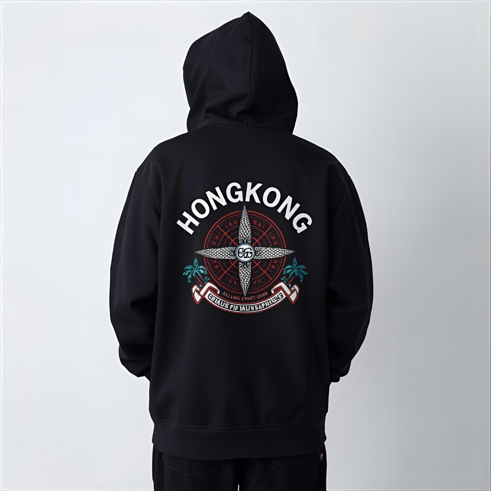 เสื้อสเวตเชิ้ตแบบสวมหัวมีฮู้ดพิมพ์ลายแรงบันดาลใจจากฮ่องกงเสื้อสเวตเตอร์แบบสวมหัวผ้าคอตตอนมีลายกราฟิก