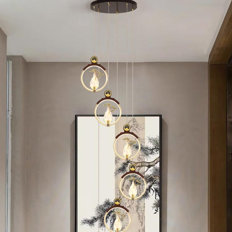 【ต้อนรับไพน์】6984 ทองแดง + ไม้ - โคมไฟระย้า 1200