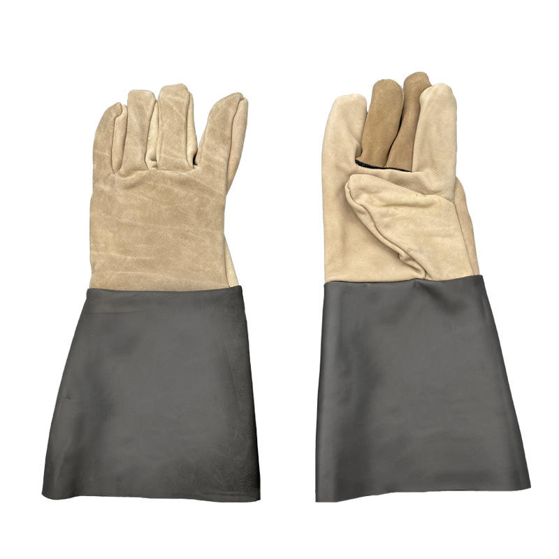 ถุงมือสำหรับงานเชื่อม ถุงมือหนังยาวคลุมคอ ทำจากหนังวัว ทนทานต่อการสึกหรอและกันลื่น ป้องกันการเชื่อมได้ยาวนาน