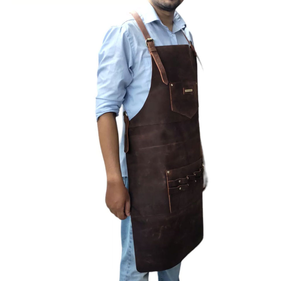 ผ้ากันเปื้อนงานเชื่อมหนัง cowhide ผ้ากันเปื้อนแนวอุตสาหกรรมทนทานต่อการเชื่อมหนังแบบแยก