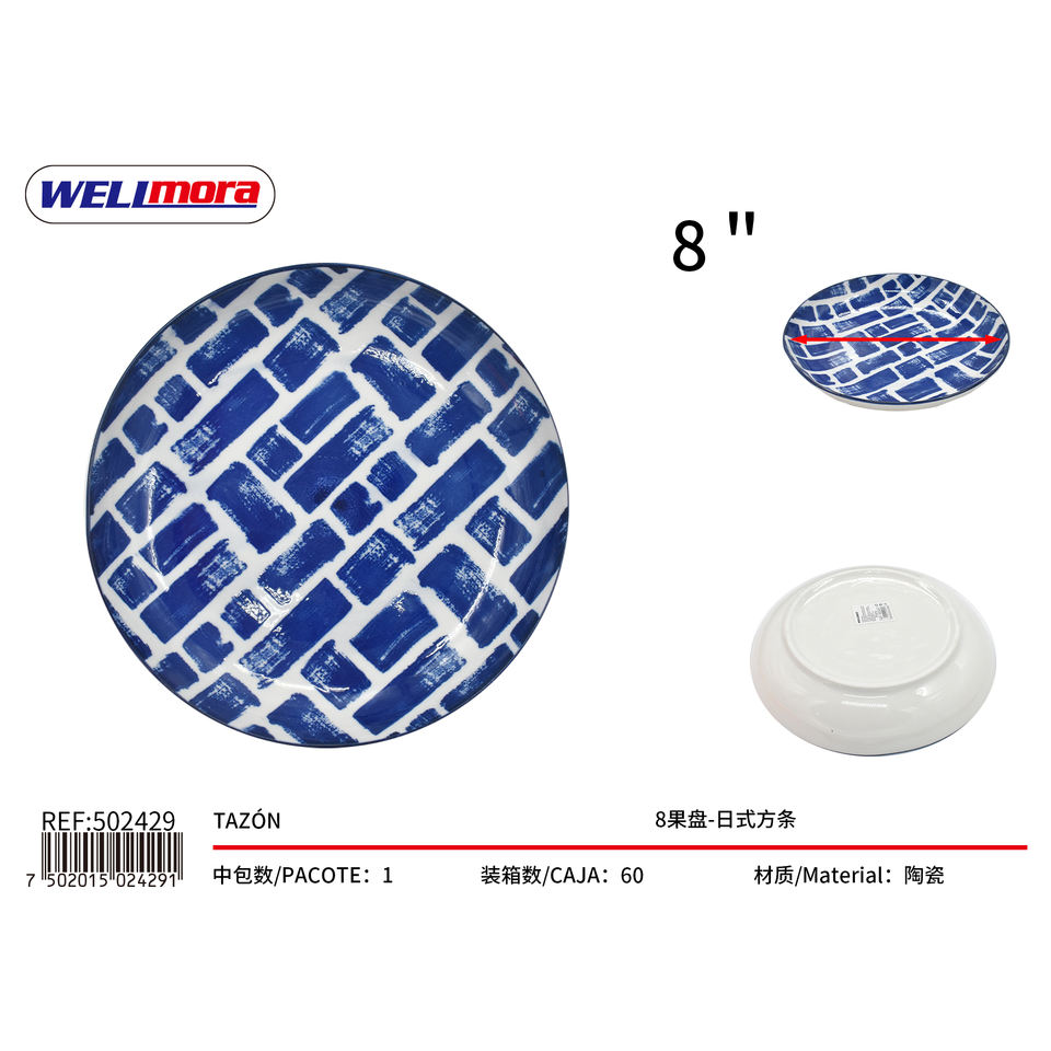 จานผลไม้พอร์ซเลนเวลิโมราขนาด 8 นิ้ว ลายสี่เหลี่ยมแบบญี่ปุ่น สำหรับโรงแรม งานเลี้ยง ซูชิ