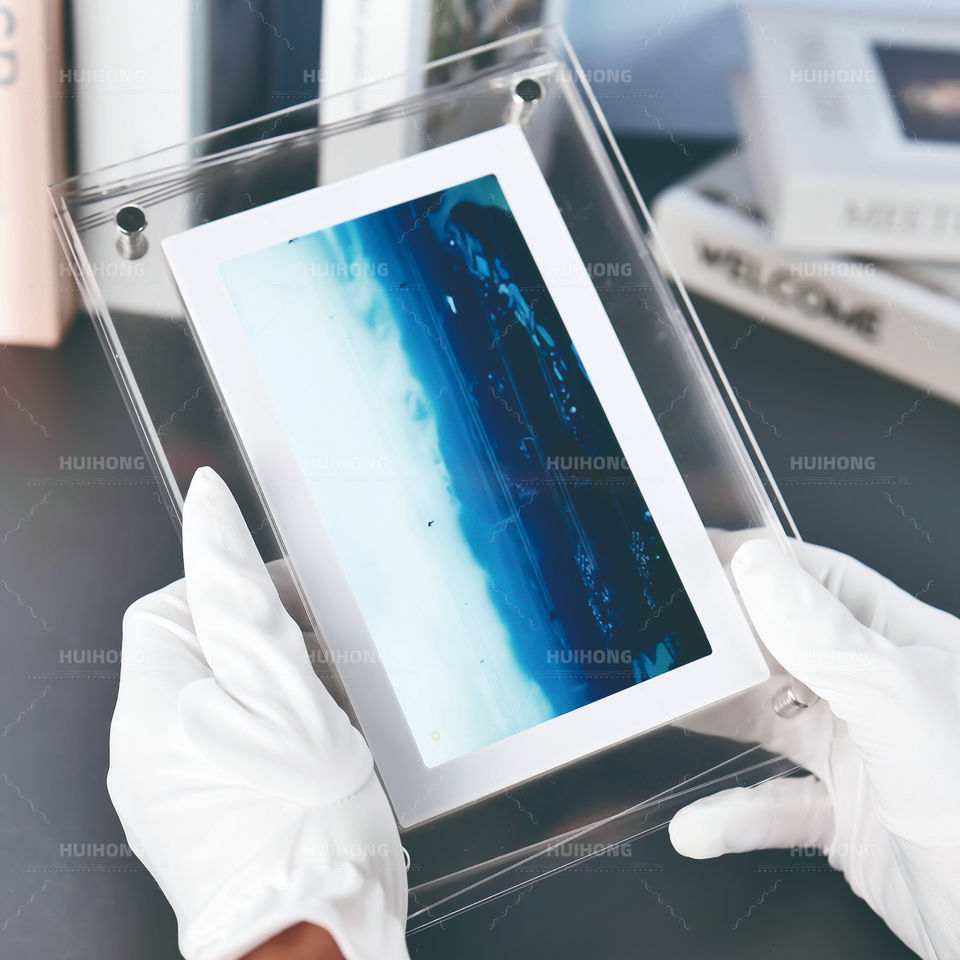 กรอบรูปอัลบั้มอิเล็กทรอนิคส์โปร่งใสขนาด7นิ้วที่ออกแบบมาอย่างดีทำจากอะคริลิคสามารถดาวน์โหลดภาพดิจิตอล