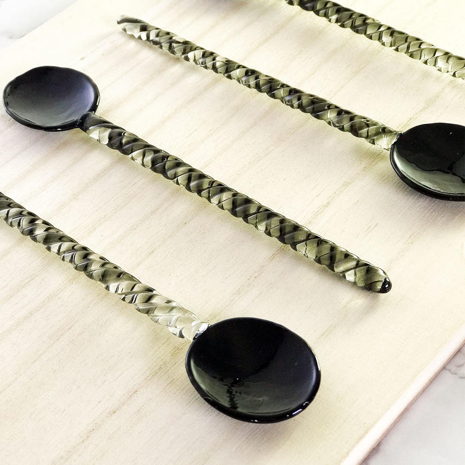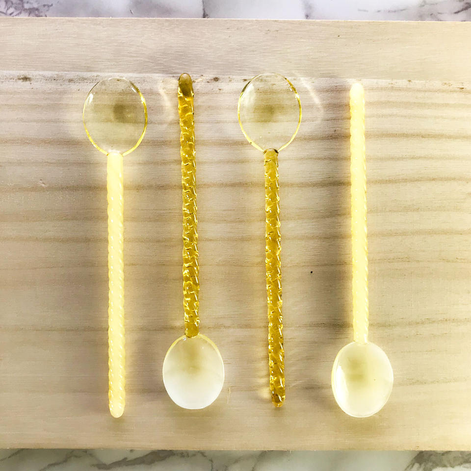 ช้อนบิดดีไซน์สวย ทนความร้อน ทำจากแก้วบอโรซิลิเกต ช้อนชาสีสันสดใส ช้อนแก้วสี