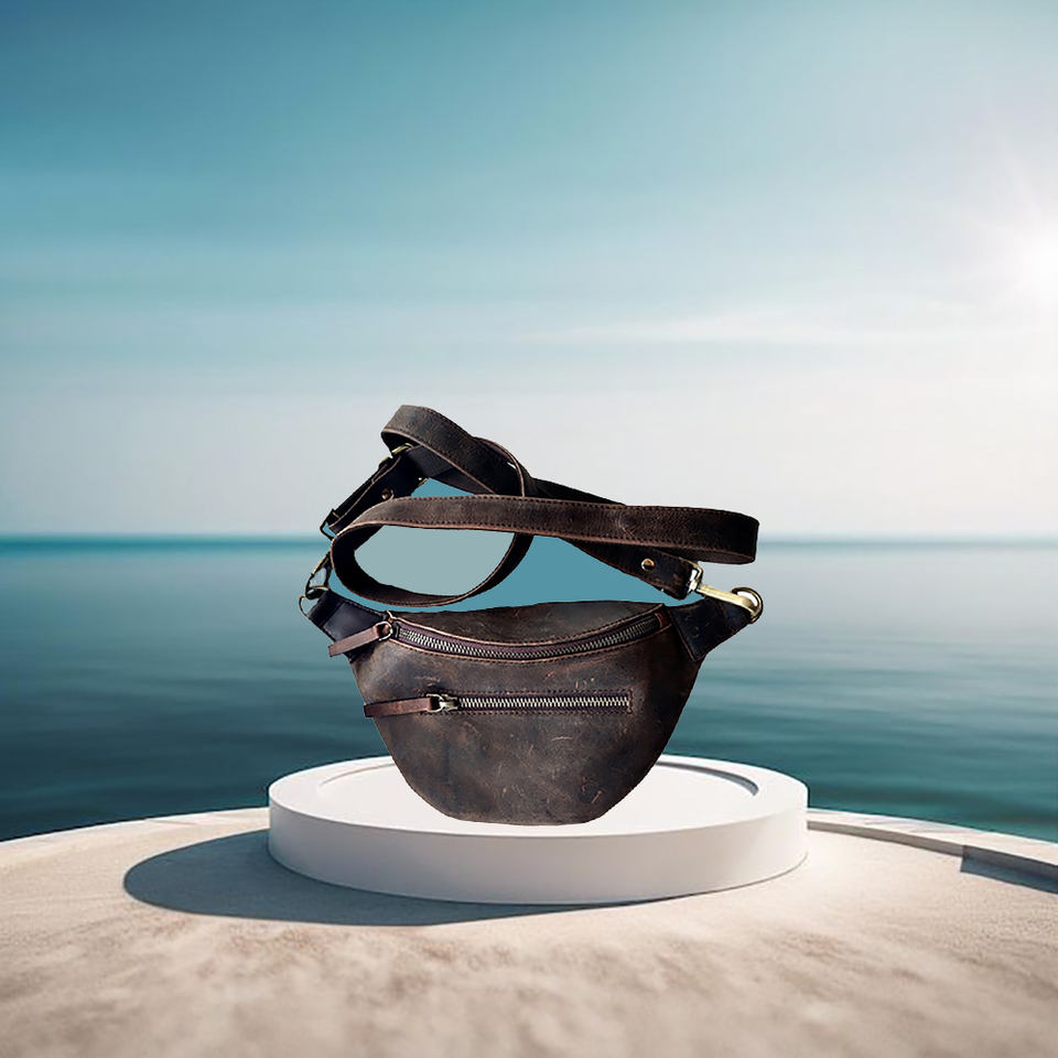 กระเป๋าคาดเอวหนังแท้ที่แข็งแรงทนทาน, กระเป๋าคาดเอวกันน้ำมีกระเป๋าซิปสีดำ