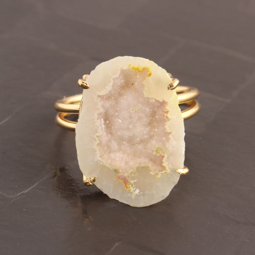 แหวนดรูซี่เลมอนจีโอดธรรมชาติ,แหวนชุบทอง/เงินสองชั้นง่ามแหวนตั้งค่าแหวนออกแบบปรับได้ใช้ได้ทั้งชายและหญิง
