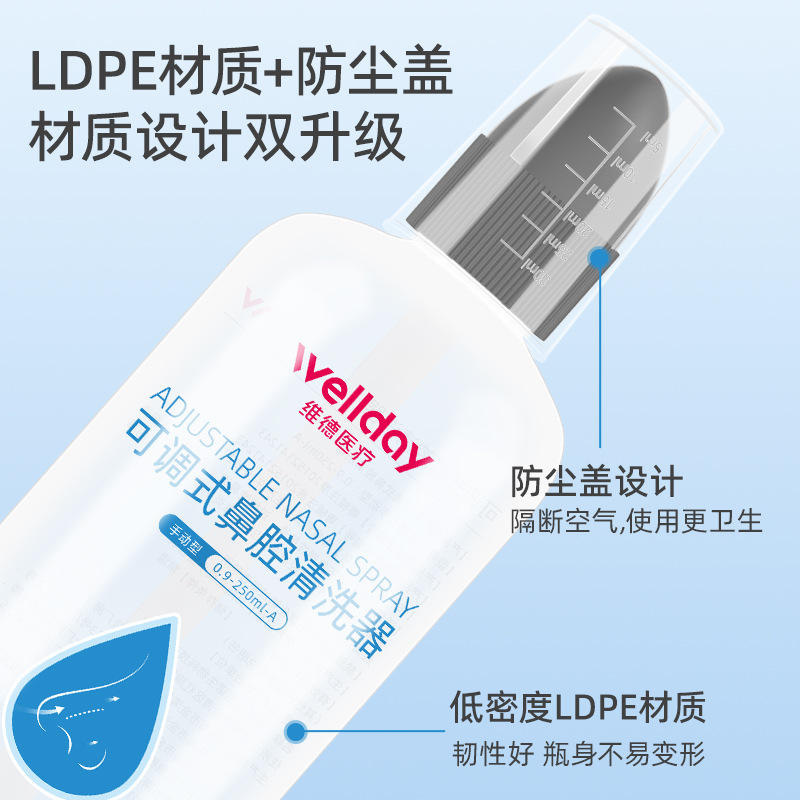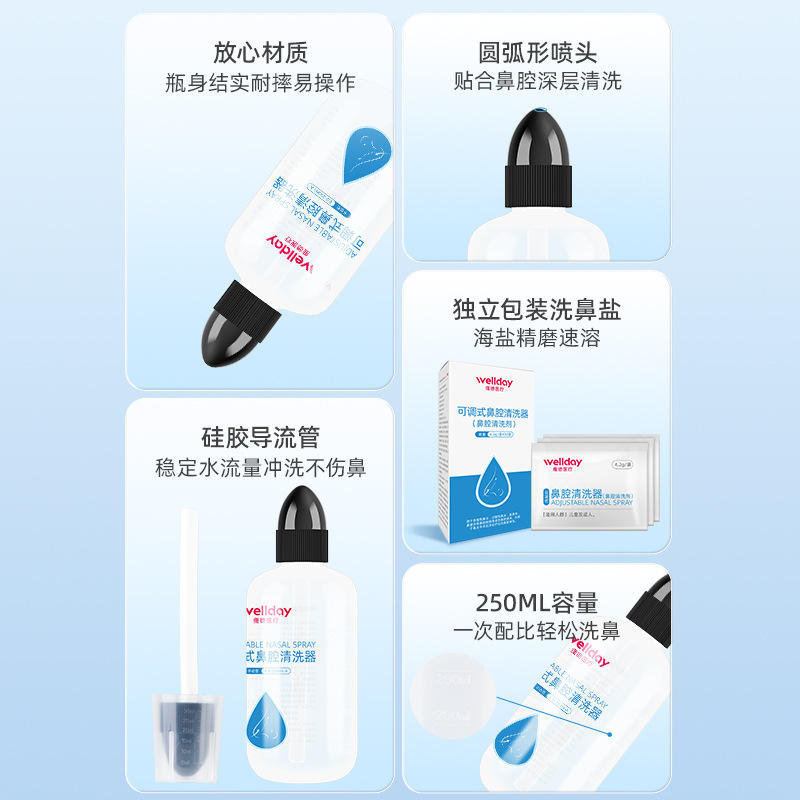 เวลเดย์ สเปรย์พ่นจมูกปรับระดับได้ 250 มล. พร้อมซอลต์แพ็คสำหรับทำความสะอาดจมูก