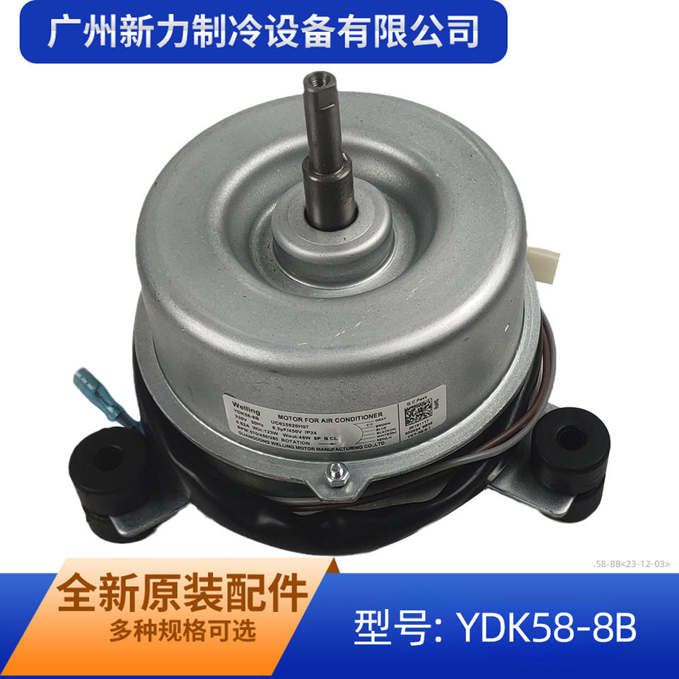 มอเตอร์แบบอะซิงโครนัส Welling รุ่น YDK58-8B 230V 50Hz เฟสเดียว 70/450/280 รอบต่อนาที แบบยึดหน้าแปลน สำหรับพัดลมภายนอกเครื่องปรับอากาศ