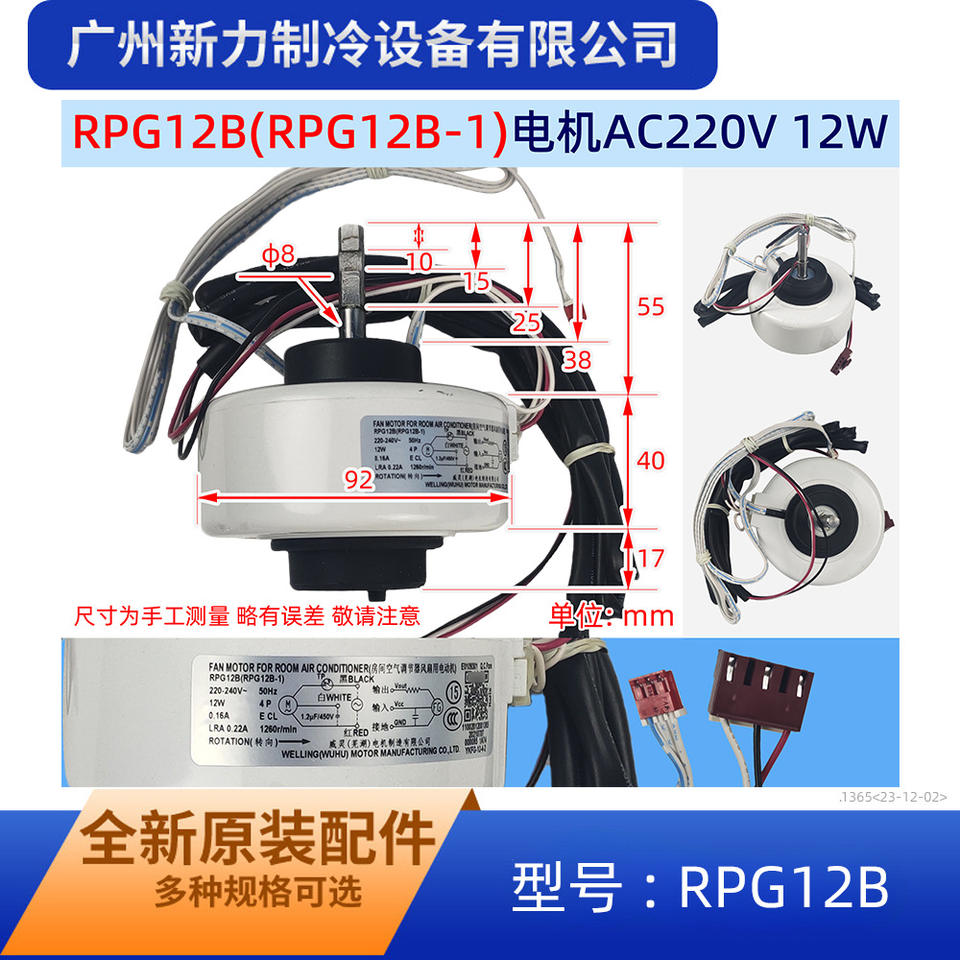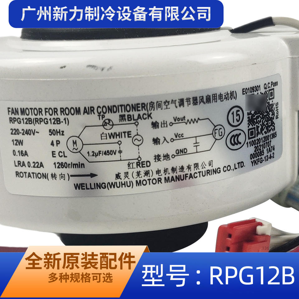 มอเตอร์พัดลมเวลลิง วูหู รุ่น RPG12B 220-240V 12W สำหรับเครื่องปรับอากาศในห้อง อะไหล่ทดแทนพัดลมภายใน