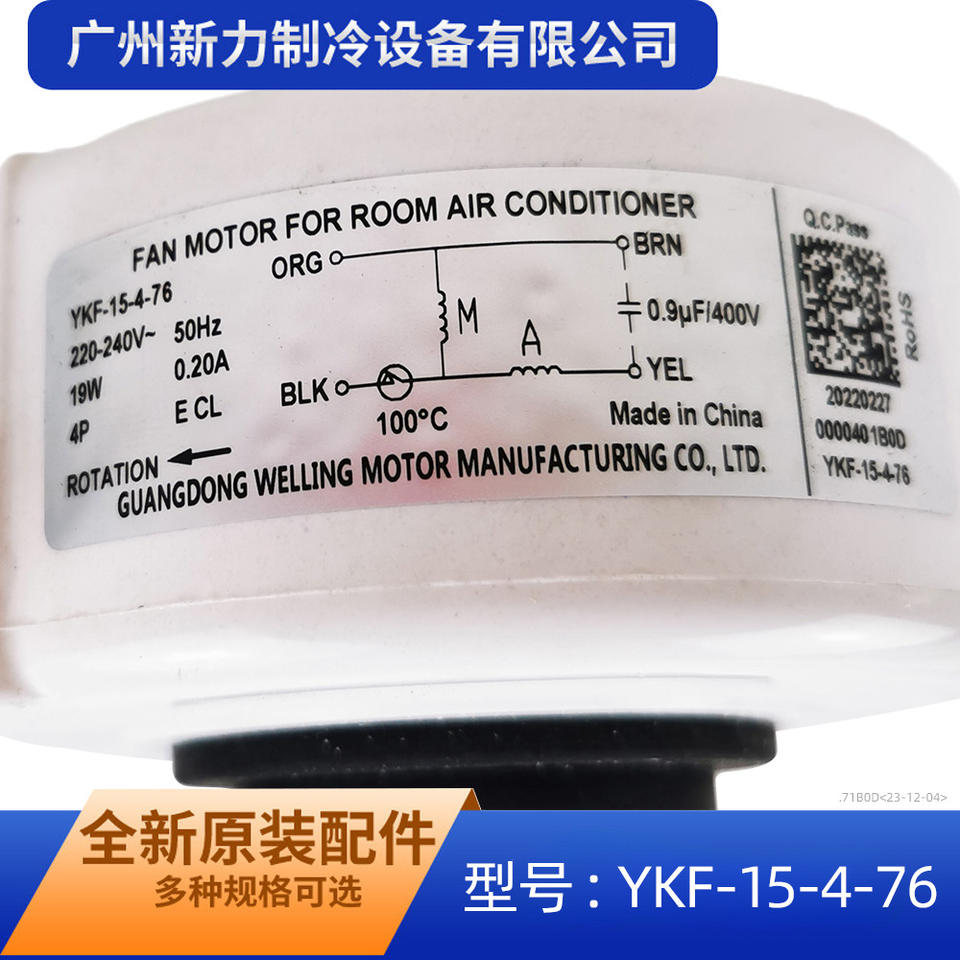 มอเตอร์พัดลม Welling YKF-15-4-76 220V 19W แบบแปรงถ่าน สำหรับเปลี่ยนในเครื่องปรับอากาศภายในอาคาร
