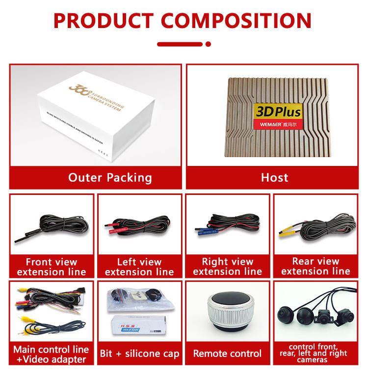 Wemeer กล้องมองหลังแบบพาโนรามา360องศา, กล้อง4ตัวลงทะเบียน DVR กล้องจอดรถอเนกประสงค์