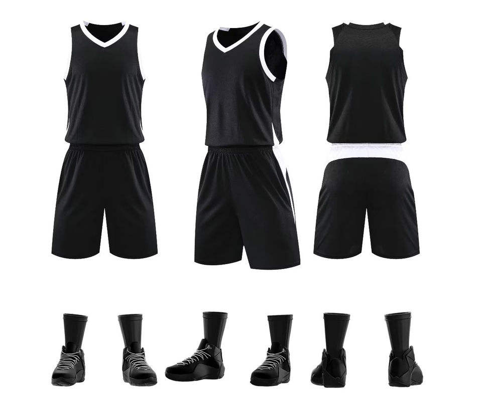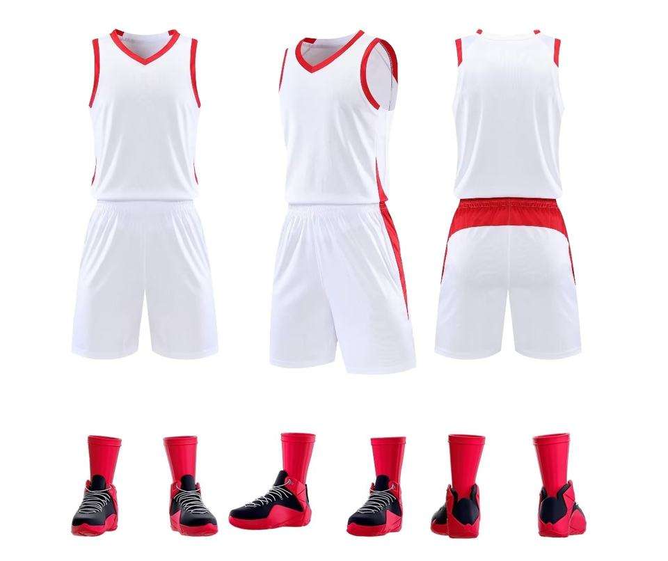 ชุดบาสเก็ตบอลผู้ใหญ่เวมเบลีย์ ไซส์พลัส แห้งเร็ว พิมพ์หมายเลขดิจิทัล โพลีเอสเตอร์ ระบายอากาศได้ดี คอวี