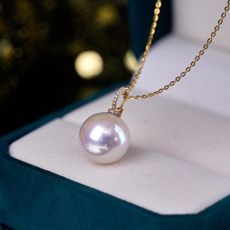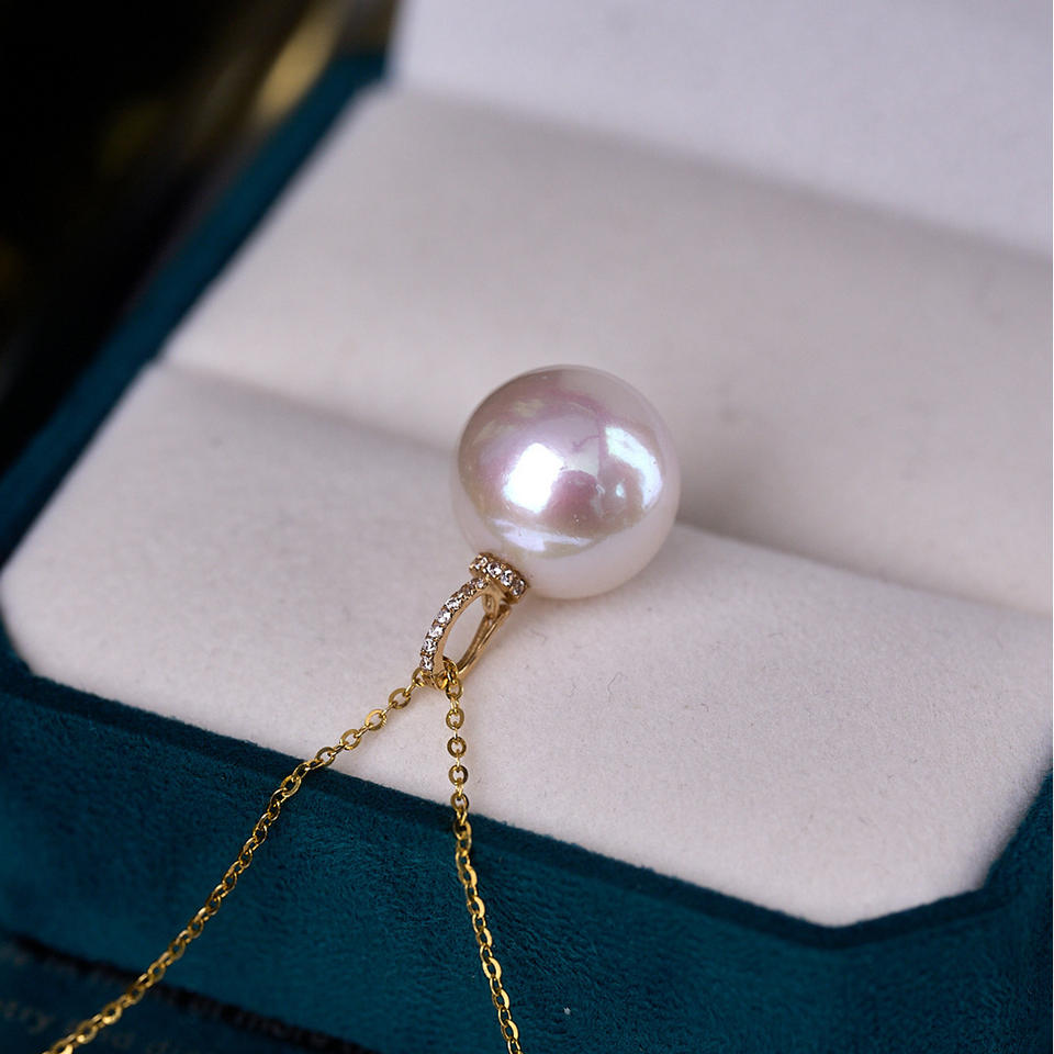 Wenchi 12-13mm Freshwater Pearl Pendant with S925 Silver Chain Round Strong Light Flawless Nipple Buckle Model 24304