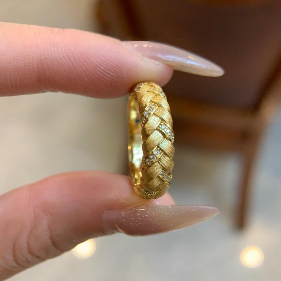 แหวนทองคำเวนชี 18K ชุบเงินแท้ S925 สไตล์อิตาเลียนย้อนยุค งานฝีมือขัดเงา ประดับเพชรทรงปรินเซสคัท ผ้าไหม