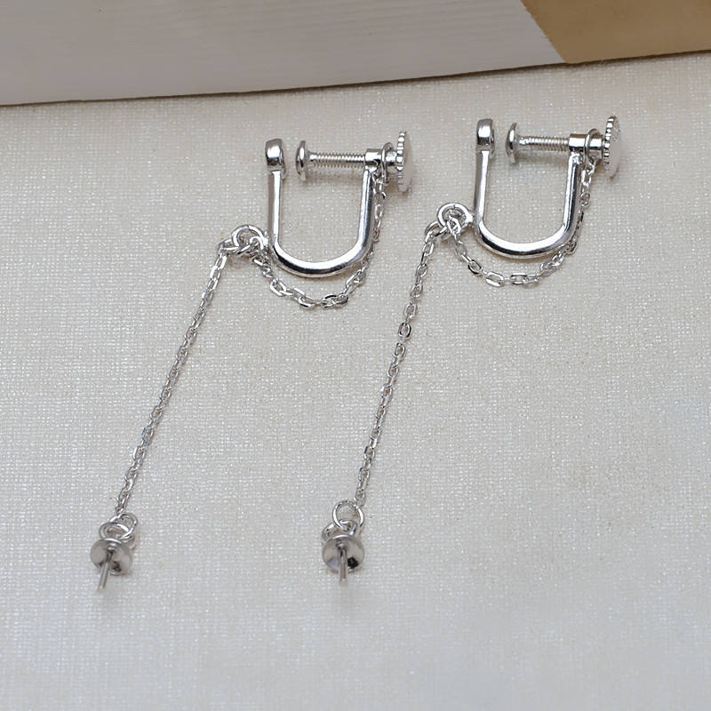 เครื่องประดับโลหะผสมเวนชิ เงินแท้ S925 ต่างหูแบบหนีบรูปตัวยู พร้อมสายโซ่ยาวประดับพู่มุก ตัวเรือนเปล่าสำหรับ DIY อุปกรณ์เสริมงานแต่งงาน