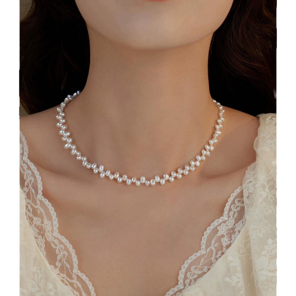 สร้อยคอไข่มุกบาโรกสวยงามแบบเวนชี ประดับลูกไม้สีเงินบดละเอียด สร้อยคอแบบเล็กซ้อนกัน สร้อยคอคล้องคอแบบหรูหรา รุ่น 17284 จากจีน