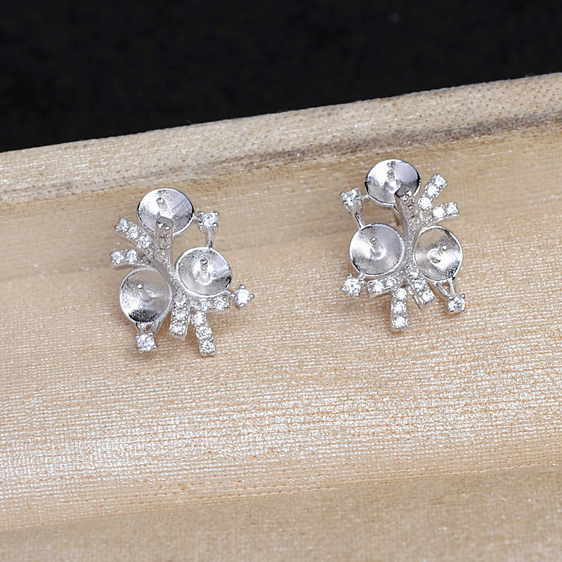 อุปกรณ์ทำเครื่องประดับไข่มุก DIY ยี่ห้อ Wenchi เงินแท้ S925 ถาดใส่ต่างหูรูปใบโคลเวอร์ แบบกึ่งสำเร็จรูป ถาดรอง 4-5 ชั้น รุ่น 15694 สำหรับเม็ดลูกปัดขนาด 3 มม. 6 มม.