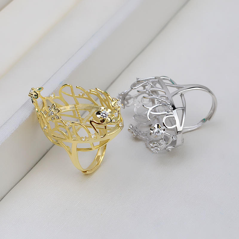 แหวนเงินแท้ S925 งานแฮนด์เมด Wenchi ลายดอกไม้ใบไม้ฉลุประดับมุกบาโรกแบบกลวง ชุบทอง 14K อุปกรณ์ DIY จากจีน