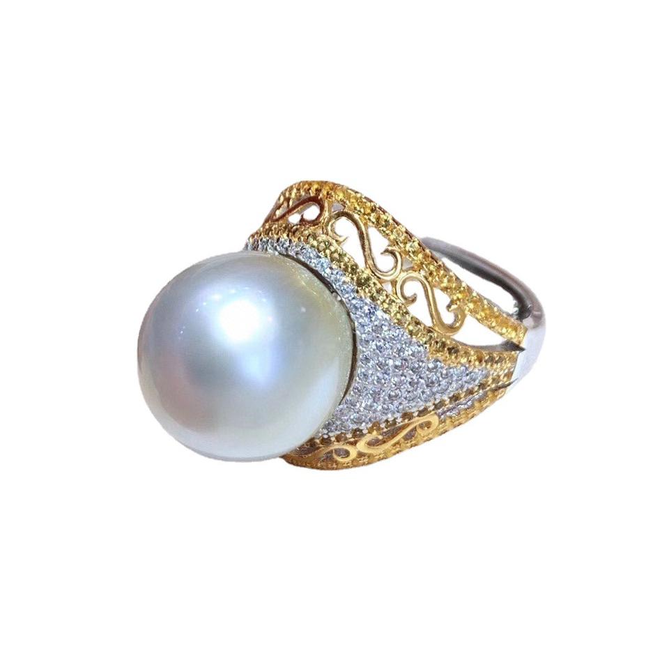 Wenchi High Quality 13-14MM Micro Flaw S925 Pure Silver Collection Pearlescent Australian White Ring Precision Inlaid Comparable