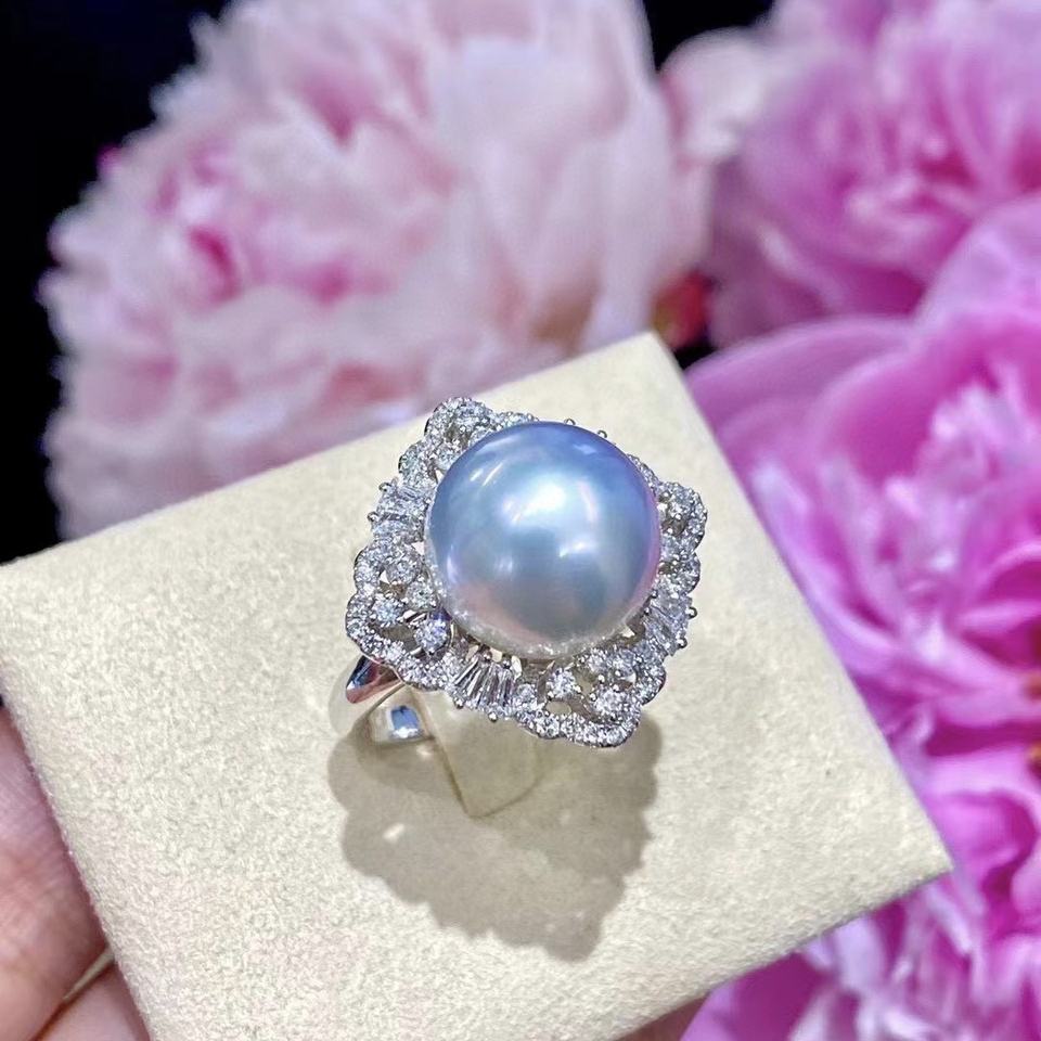 แหวนเงินแท้ S925 ดีไซน์ใหม่จากเวนชิ ขนาด 10 มม. ประดับมุกน้ำจืดธรรมชาติ ชุบทองคำสีกุหลาบ ดีไซน์แบบ Cold Light Active Mouth