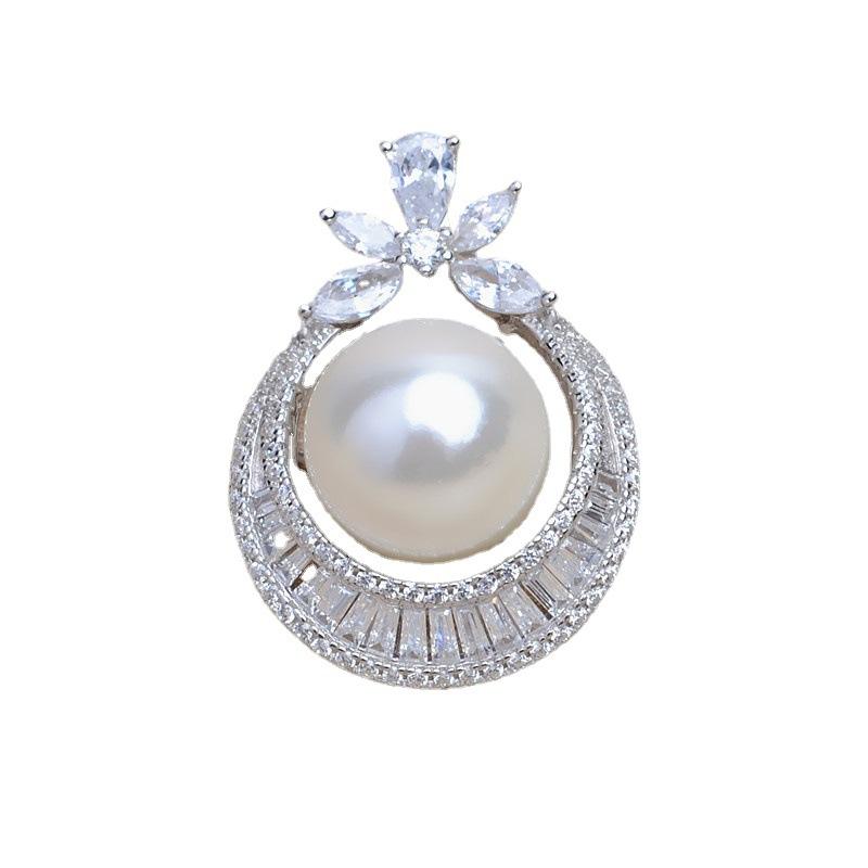 จี้เงินแท้ชุบทองคำขาว S925 ยี่ห้อ Wenchi สำหรับทำเครื่องประดับ DIY แบบมีฐานรองไข่มุก ขนาด 13-14 มม. รุ่น 13867