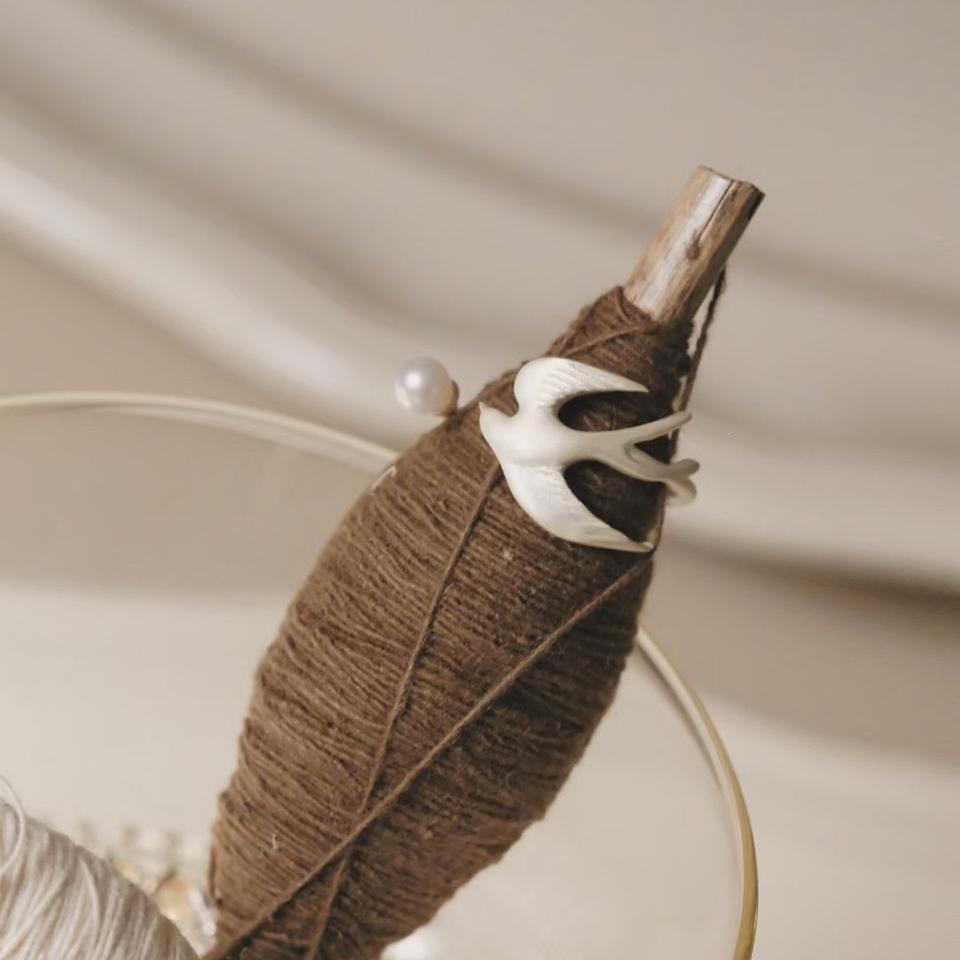 เวนชี่ S925 แหวนเงินแท้ลายโบราณรูปนก ดีไซน์นกนางแอ่นแบบจีนใหม่ ประดับมุกหรูหราสง่างาม สำหรับผู้หญิง รุ่น 22317