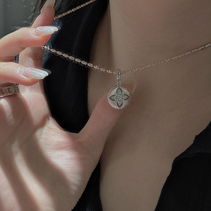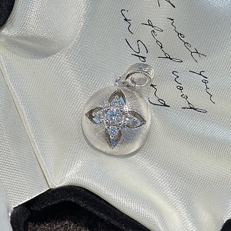 Wenchi S925 Pure Silver Small Flower Pendant Elegant Medieval French Design Simple Fashionable Style Hollow Carved Pattern China
