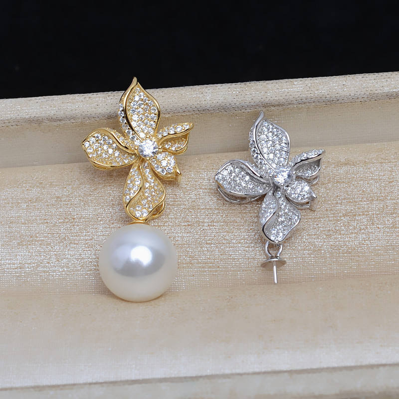 จี้เงินแท้ S925 รูปดอกไม้ขนาดใหญ่ ประดับมุก สำหรับผู้หญิง รุ่น 13808 พร้อมอุปกรณ์เสริม 12-16 ชิ้น ผลิตในจีน