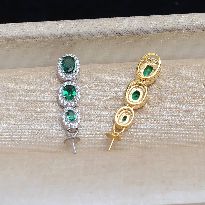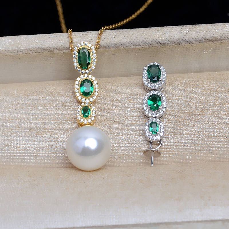 จี้เงินแท้ S925 ประดับเพทายสีเขียว สำหรับผู้หญิง พร้อมถาดใส่ไข่มุก DIY ขนาด 7-13 มม. รุ่น 14100 หัวจี้เปล่า อุปกรณ์ประกอบเครื่องประดับ