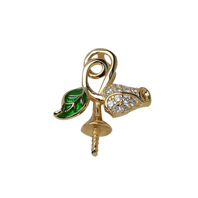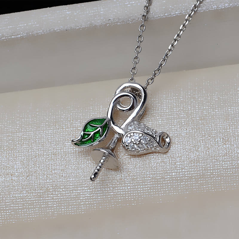 จี้รูปใบไม้กุหลาบเงินแท้ S925 สำหรับทำสร้อยคอ ตัวจับจี้ DIY สำหรับผู้หญิง ใช้กับผม ทำจากสแตนเลส สำหรับไข่มุกขนาด 8-13 มม. 13407 จีน