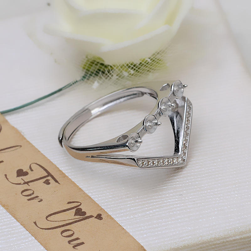 Wenchi S925 Silver Open-End DIY Accessories Women's Inlay Living Ring 4 Pieces 5-5.5 Pearl Hollow Holder Semi-Finished Model