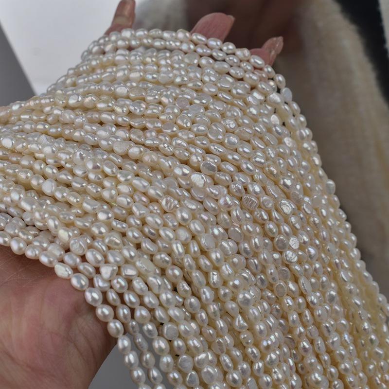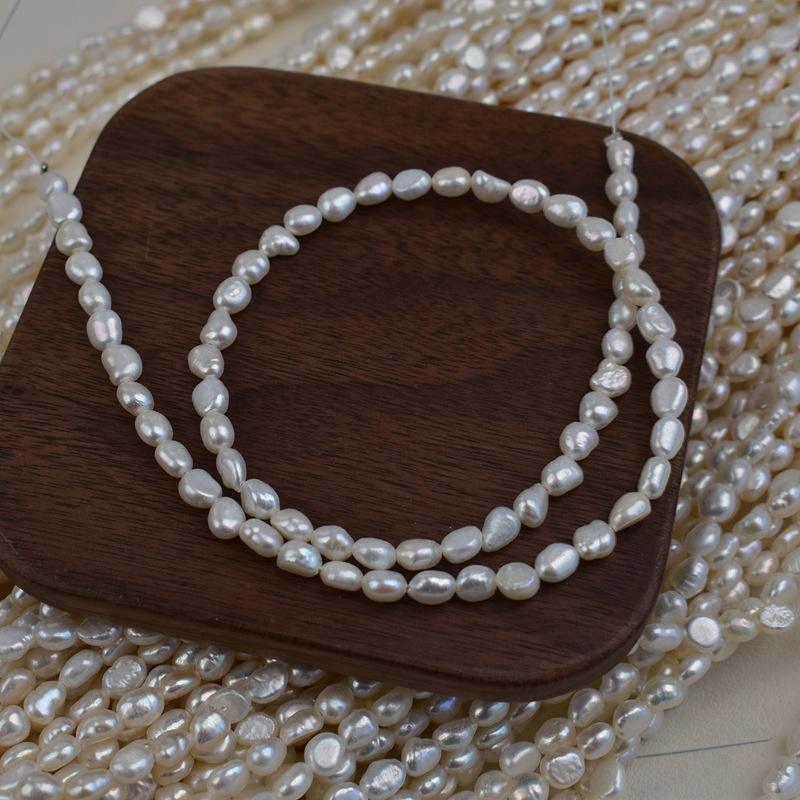 เวนชี จูจี้ ขายส่งไข่มุกน้ำจืดแท้ทรงบาร็อคจากจีน ขนาด 4.5-5 มม. แบบมีรูตรงสองด้าน เงางาม รูปทรงข้าวโพด